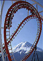 The car must have started at least half a loop radius above A. Exploring Further: About a classroom demonstration of "loop the loop" with a "hot wheels" toy car--click here. Site about roller coasters--the biggest, highest, the one with the most loops (8) and the one with the biggest loop ("Moonsault Scramble" in Japan, pictured at the beginning of this page)--click here.