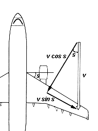The value of W is set by A--in other words, the wing must be long enough, wide enough and efficient enough to keep the weight W of the loaded airliner in the air. How high and how fast should the airliner fly? Passengers want to reach their destination quickly, so designers aim at a high "cruising speed." However, passengers also value safe landings, and hence the landing speed should be slow. Speed is the main reason why airliners fly at an altitude above 30,000 feet or close to 10 kilometers. Air density decreases to about 1/2 with each added 5 km of altitude, so at 10 km, D is about 1/4 its sea-level value and an airplane can double its speed to generate the same lift, with the same drag (which also grows like Dv2). The main reason airliners have pressurized cabins is to allow them to fly higher in order to fly faster. How fast? The practical limit seems to be around 600 mph (960 km/hour). Any closer to the speed of sound (1200 km/h = 746 mph, varies with temperature) and the air flow above the wing creates shock fronts which increase drag and reduce lift. Even to get that far, swept-back wings are needed.